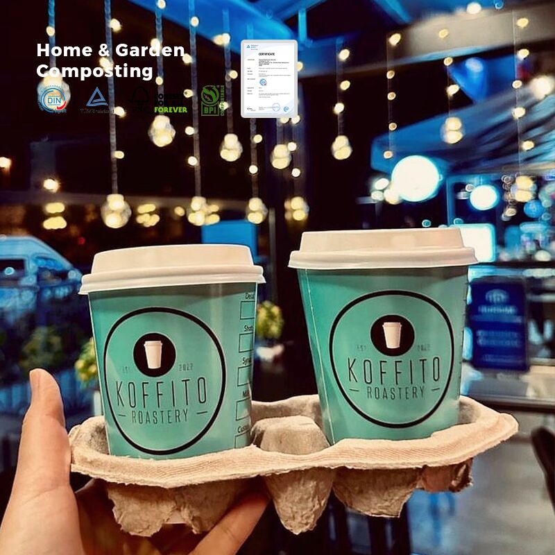 Our 12oz & 16oz compostable takeaway paper cups meet all four.